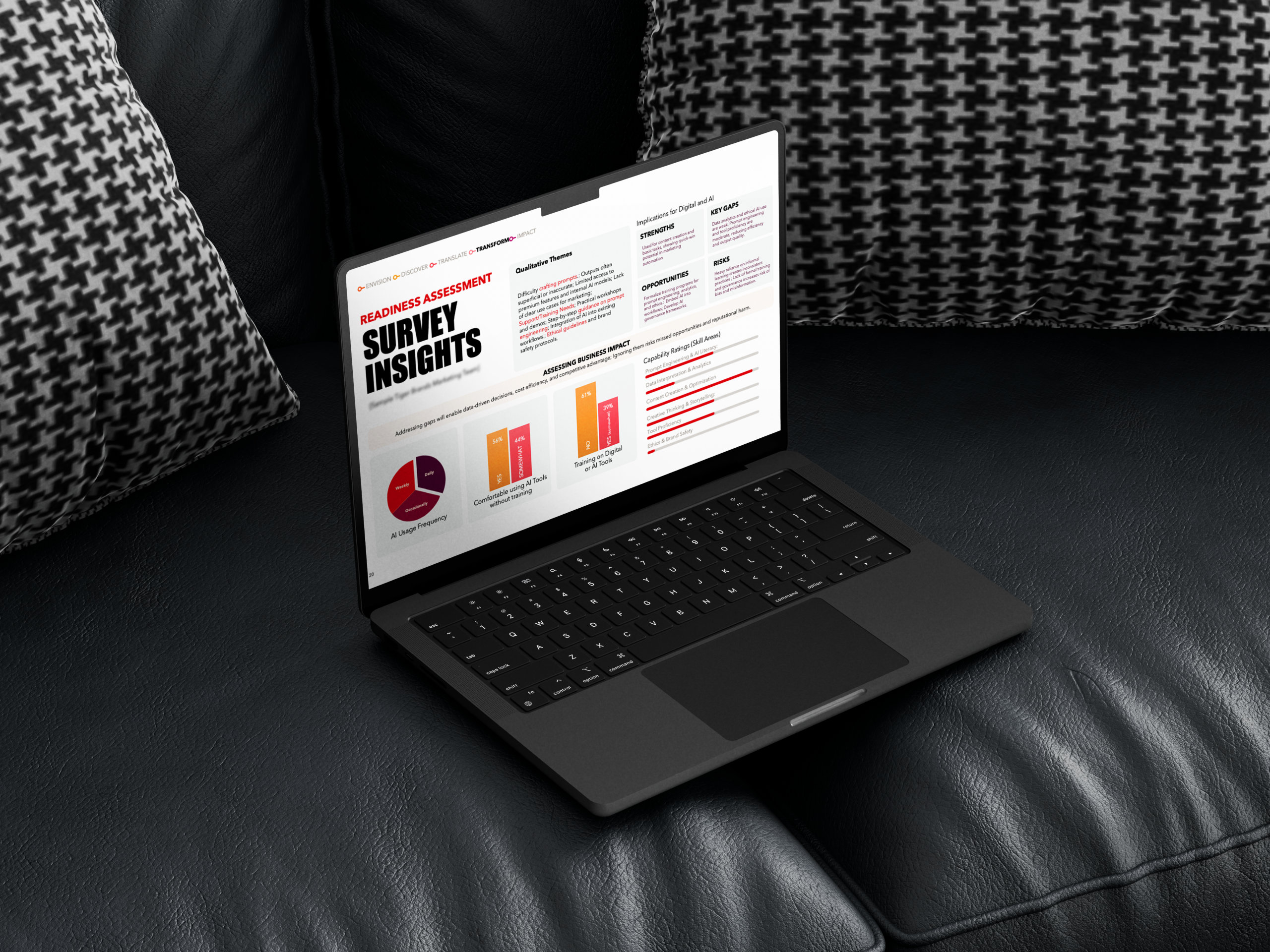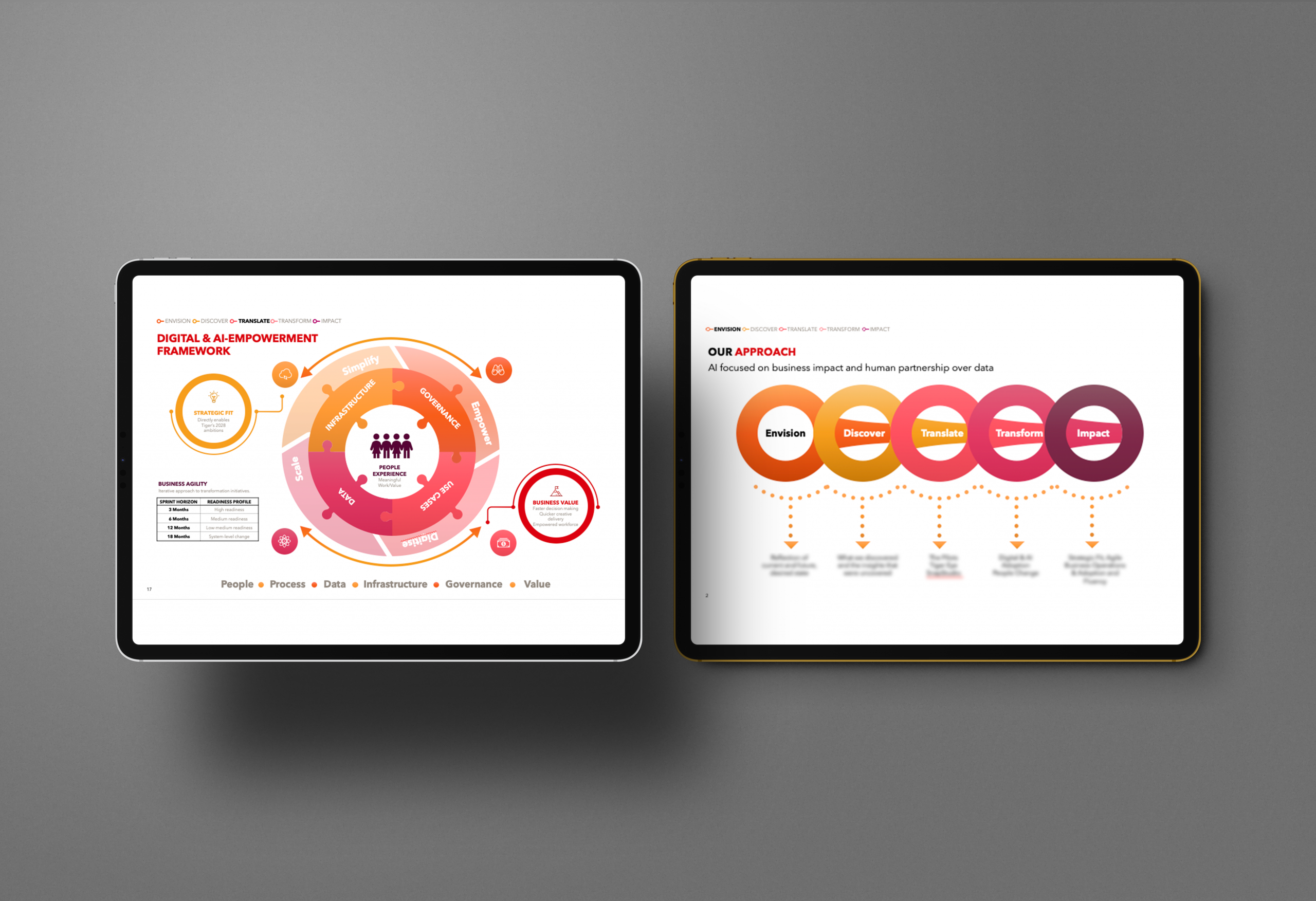 Transforming 144 slides, thousands of lines of synthesised data, prioritisation matrices, and hundreds of bullet points and wordy paragraphs into a slick, visually compelling, and attention-grabbing presentation deck.